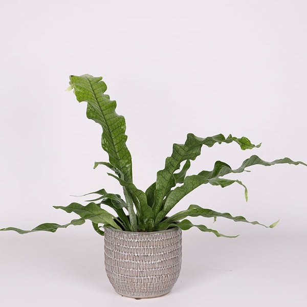 Asplenium “Crocodile Fern” gets its name from the unique pattern on its leaves, which resembles crocodile skin. This species is popular for its exotic appearance and can reach a height of 40-50 cm. Asplenium, also known as a fern, is an elegant plant that brings natural beauty and sophistication to any environment. Its twisted, deeply cut leaves form an eye-catching crown that adds subtlety and freshness to both indoor and outdoor spaces. This evergreen plant is easy to care for and resilient to various conditions. Asplenium is perfect for creating green arrangements at home, in the office, or in the garden. It also has air-purifying abilities, making it not only decorative but beneficial for the environment.